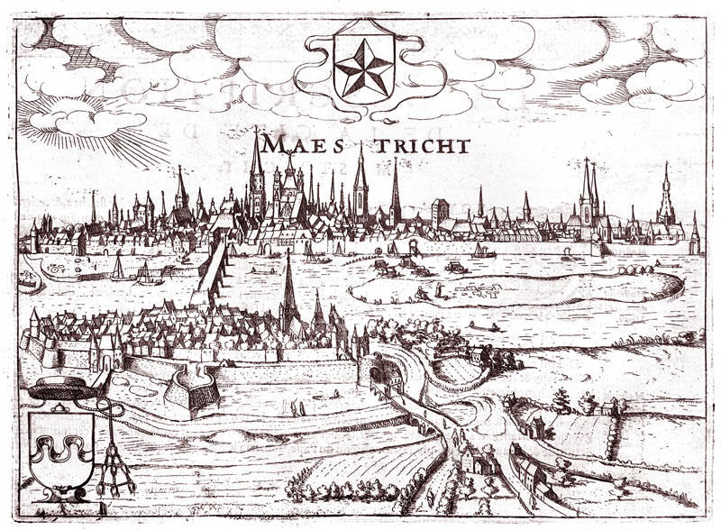 Beeld van het gezicht op Maastricht uitgegeven in 1613 door Guiccardini.